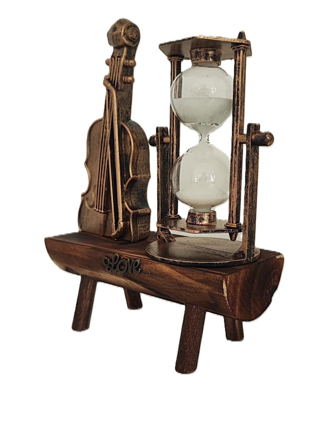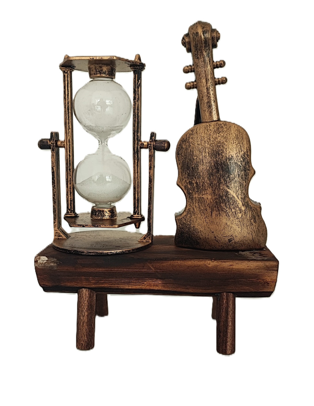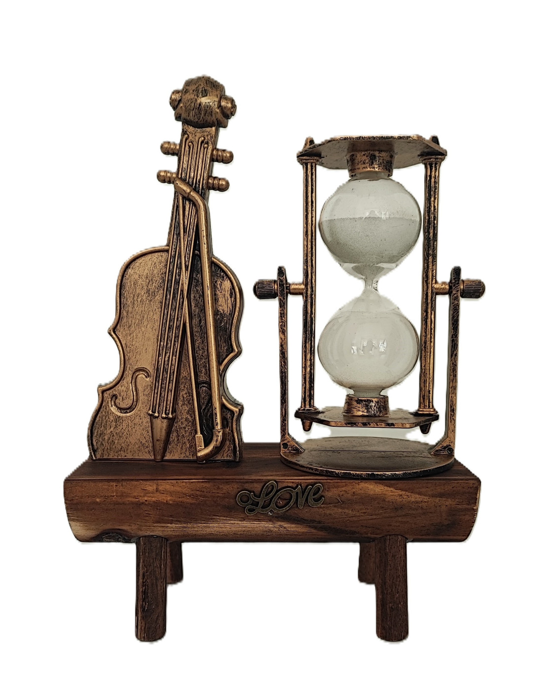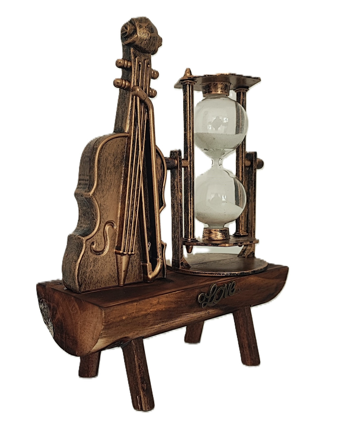 Vioara si Clepsidra nisip Decoratiune pe Suport de lemn