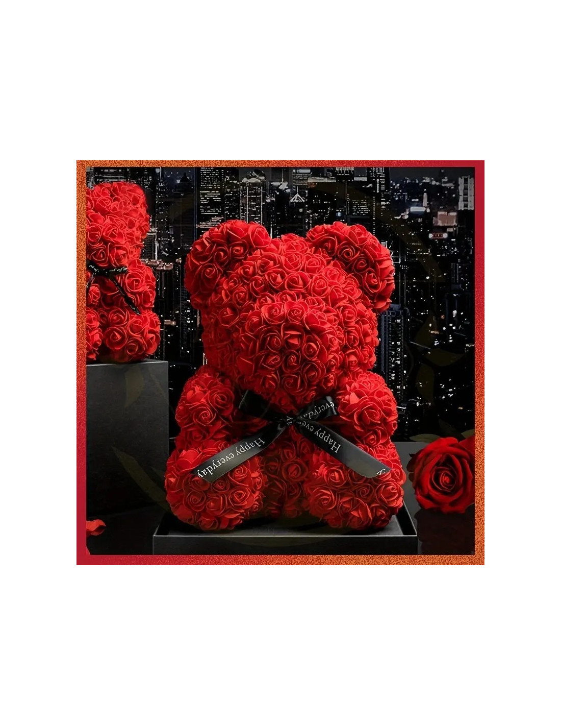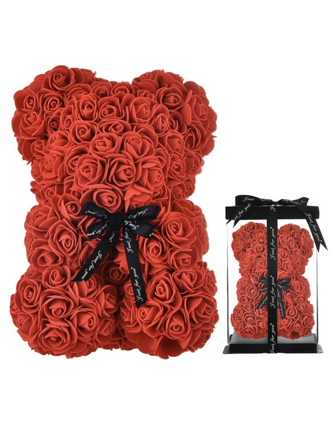 Ursulet din Trandafiri Artificiali Rosii, Ambalat in Cutie,35 cm