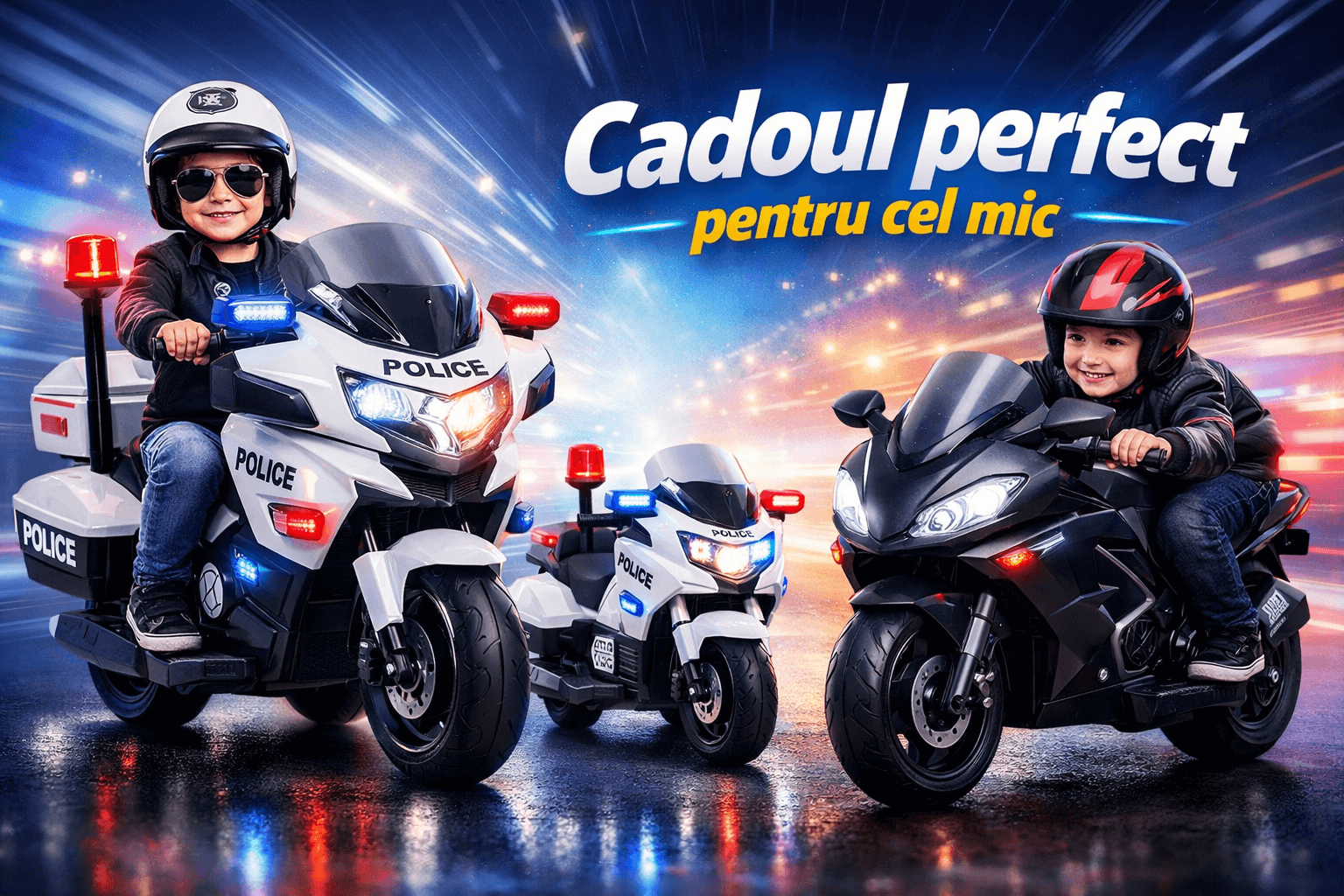 Descopera gama noastra de motociclete electrice pentru copii, inspirate din modele reale de politie si sport. Echipate cu lumini LED, efecte sonore si design atractiv, aceste motociclete ofera celor mici o experienta interactiva si plina de energie. Alege modelul potrivit in functie de varsta si preferinte si transforma fiecare plimbare intr-o adevarata aventura.