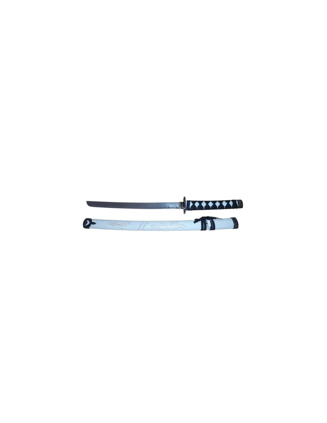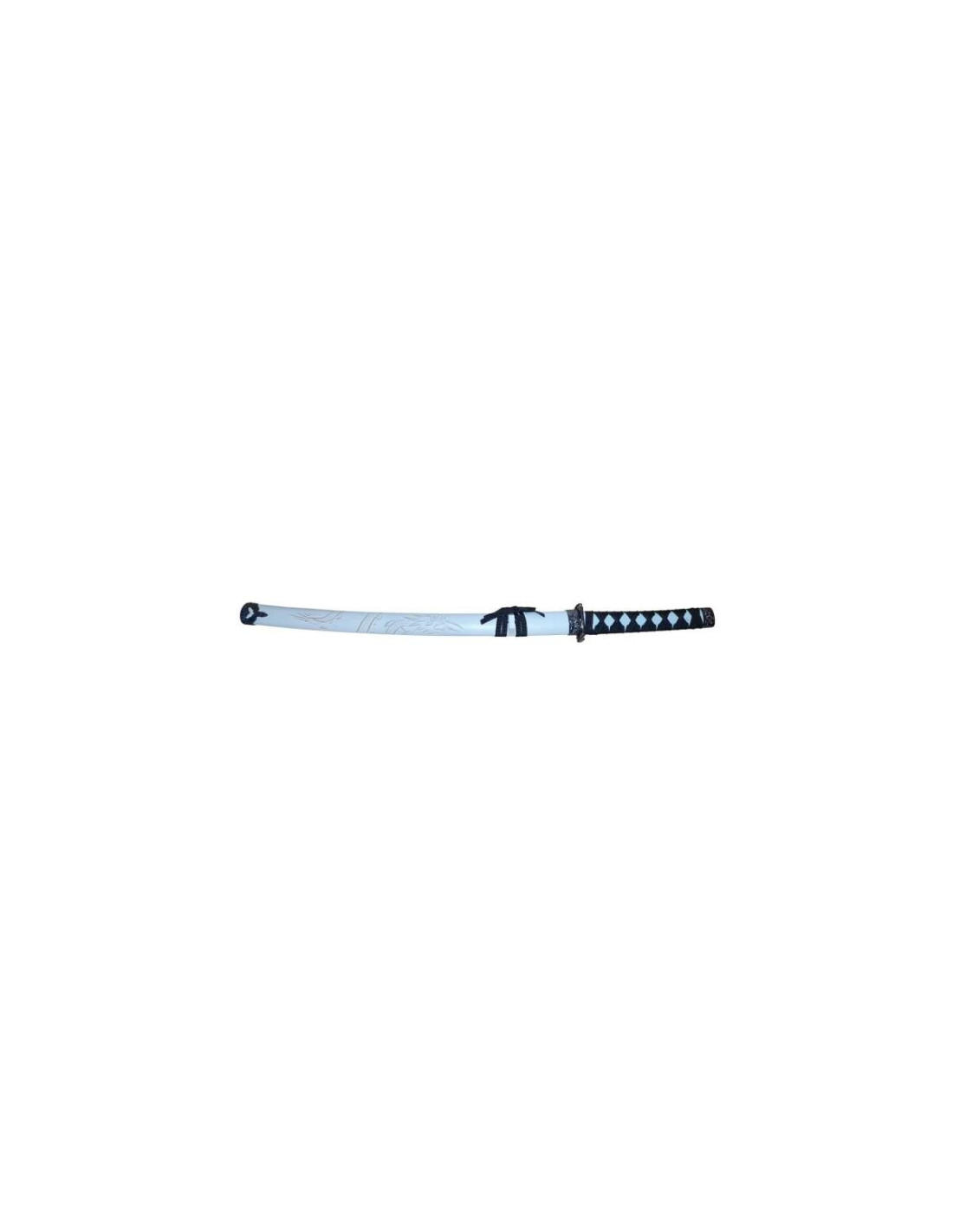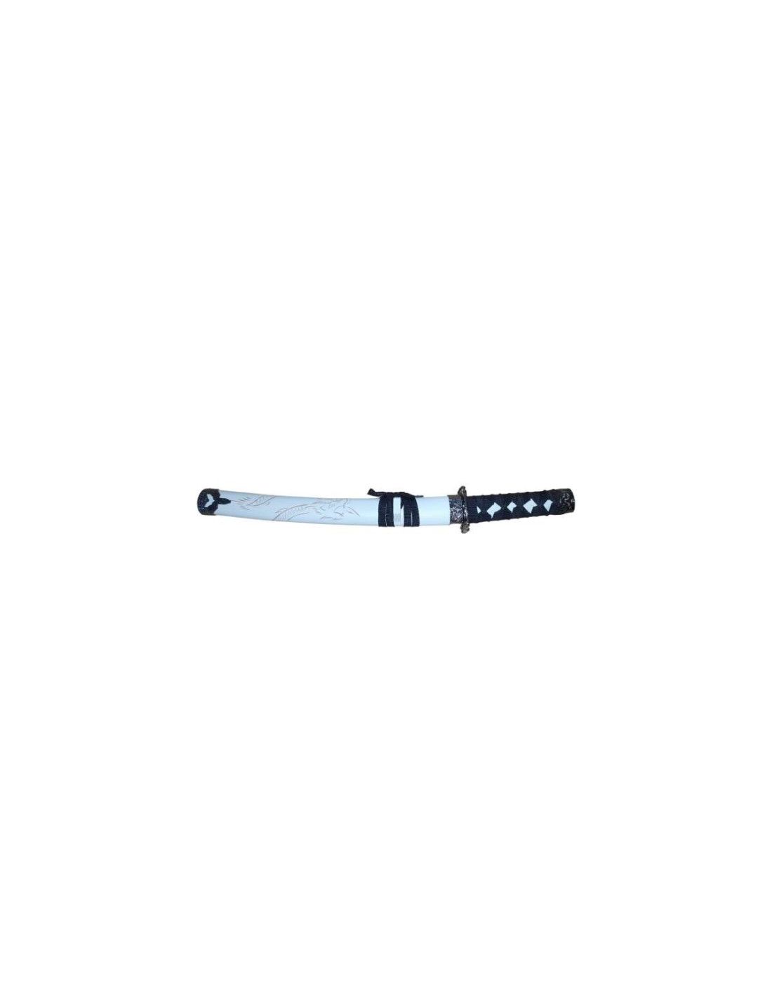 Set cadou 3 săbii katane japoneze decorative, panoplie, alb/roșu/negru, metalic, teacă.
