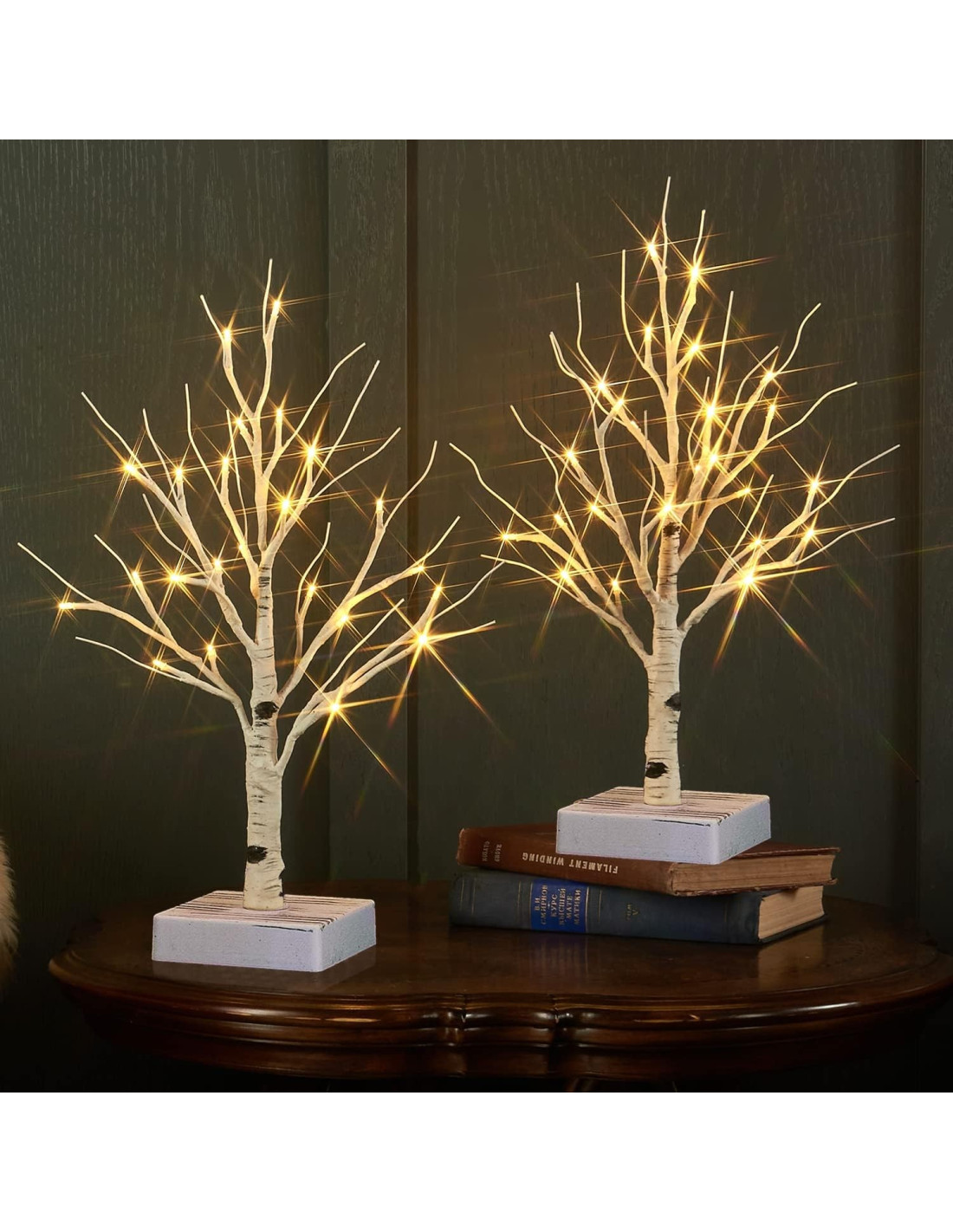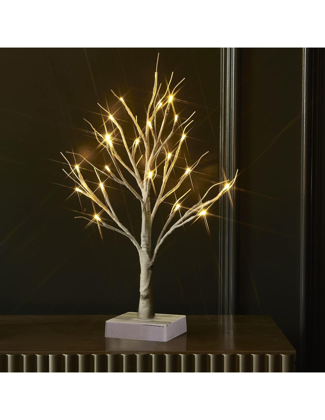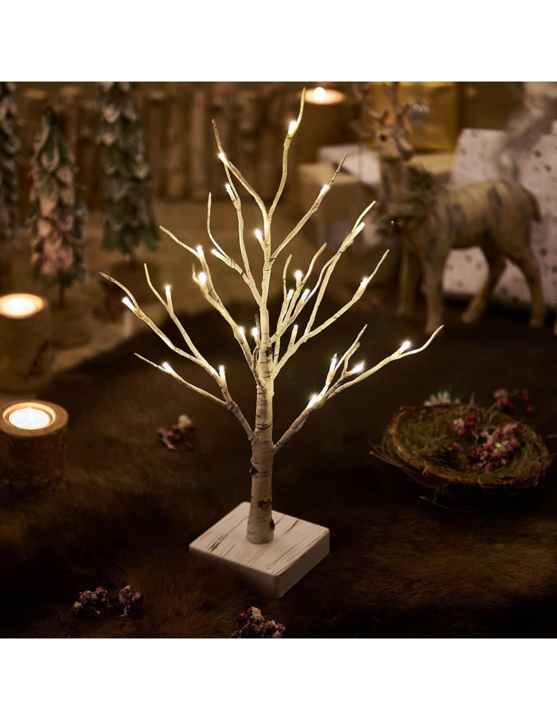 Textură reală din scoarță de mesteacăn albă acoperită, 100% lucrată manual, 24 de lumini LED albe calde pe ramuri de copac, aspect elegant.