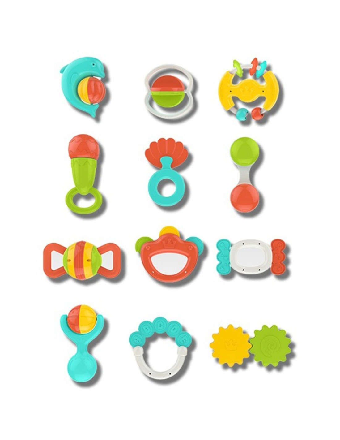 SET 12 ZORNAITORI SI JUCARII GINGIVALE PENTRU BEBELUSI CU FORME SI CULORI DIFERITE