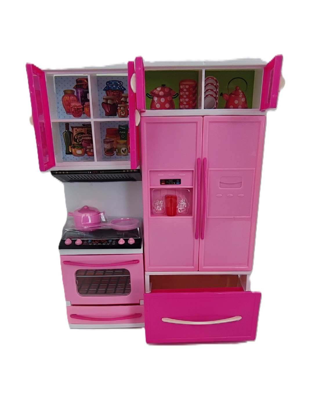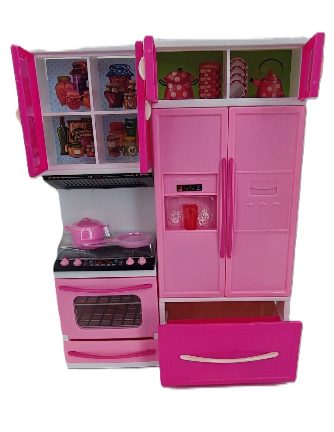 Copiii pot deschide și închide ușile dulapurilor, frigiderului și cuptorului, simulând activitățile din bucătărie.