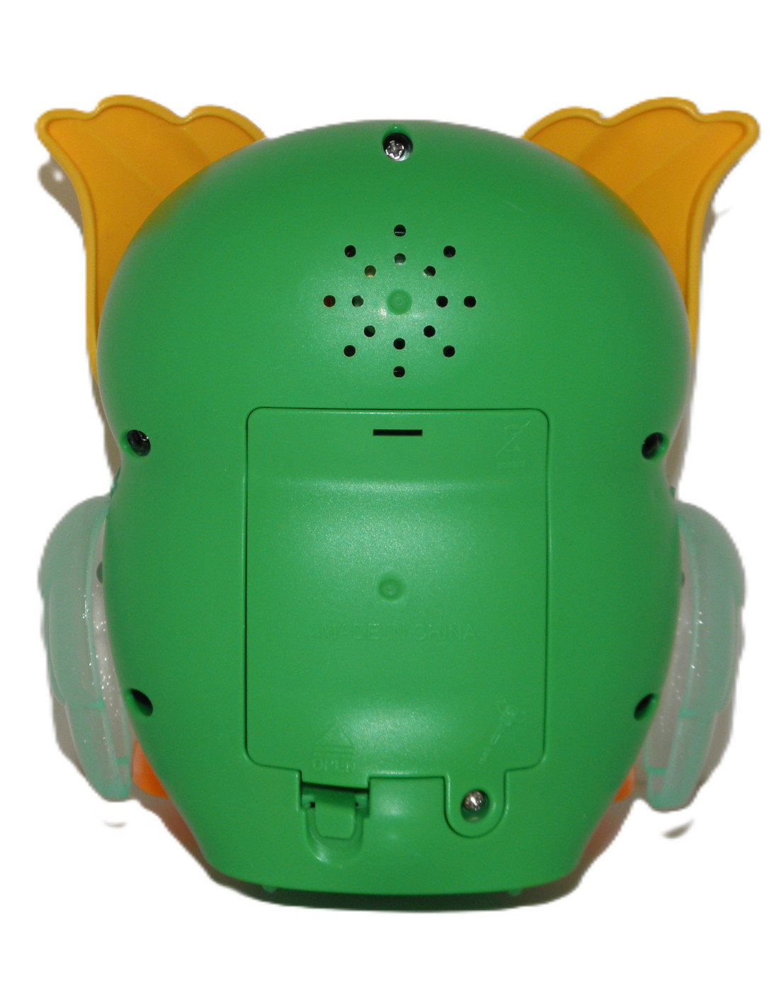 Bufnita interactiva cu muzica si lumini - Jucarie educativa pentru copii, 3 ani+ functioneaza cu 3 baterii AA neincluse in cutie. In partea de jos are un buton de unde se activeaza doar modul de a vorbi a povesti sau a canta.