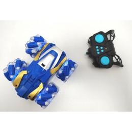 Descoperă performanța impresionantă a mașinuței RC Stunt 4x4, un model conceput pentru acțiune și manevre spectaculoase. Dotată cu roți omnidirecționale, vehiculul oferă o mobilitate excepțională, permițând rotiri rapide, derapaje controlate și deplasare laterală cu ușurință. Designul sportiv, în nuanțe de albastru metalizat și auriu, îi conferă un aspect modern și dinamic.