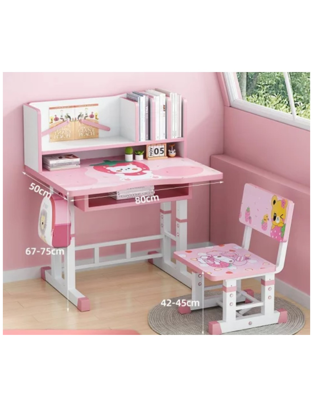 Acest set de birou pentru copii este conceput pentru a crea un spațiu de studiu atractiv și organizat, fiind totodată confortabil și adaptabil pe măsură ce copilul crește.