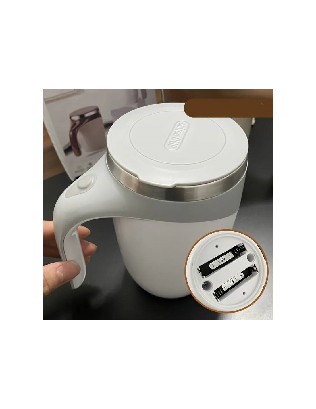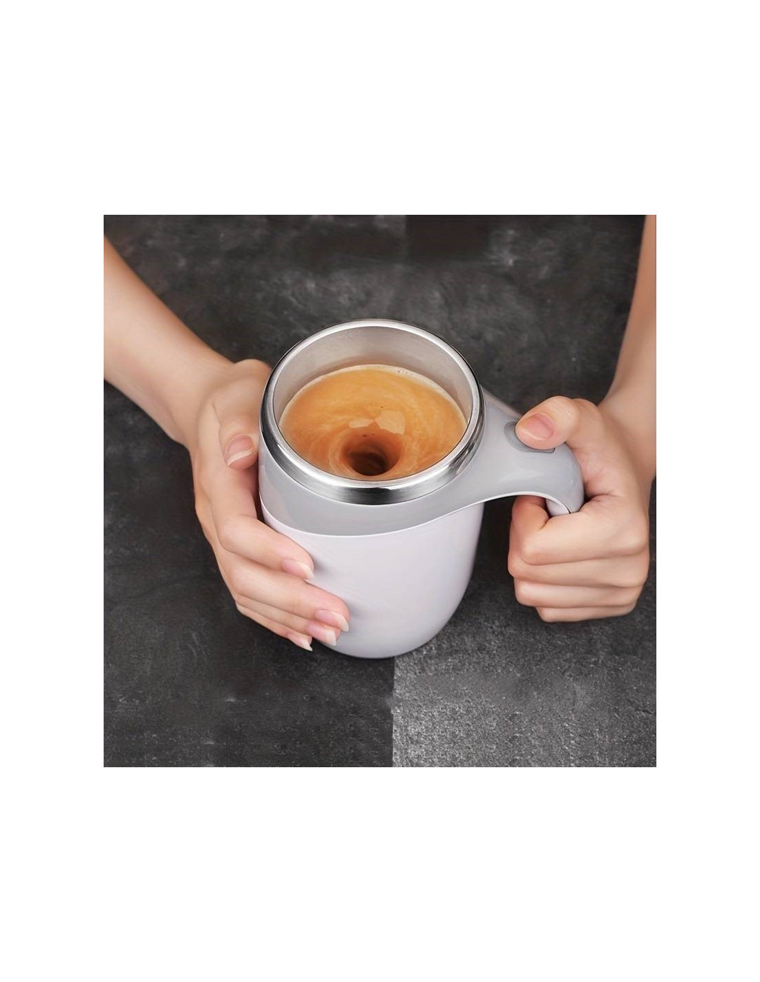 Apăsați un buton şi cana își activează funcția de amestecare automată, eliminând nevoia de a utiliza lingura sau alte instrumente.