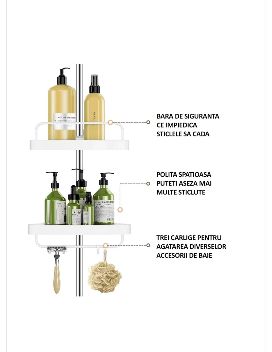 - prevazut cu 4 nivele pentru sampoane, geluri, etc;