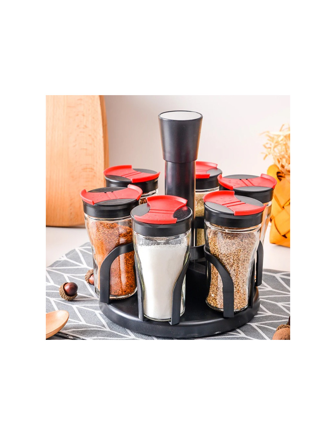 Set 7 piese cu suport rotativ pentru condimente.