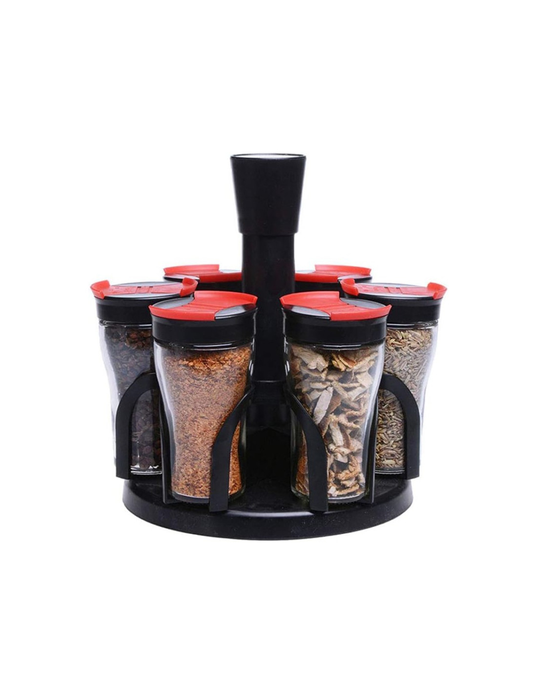 - Suportul este rotativ și are un centru vertical negru pentru a permite accesul ușor la toate recipientele.