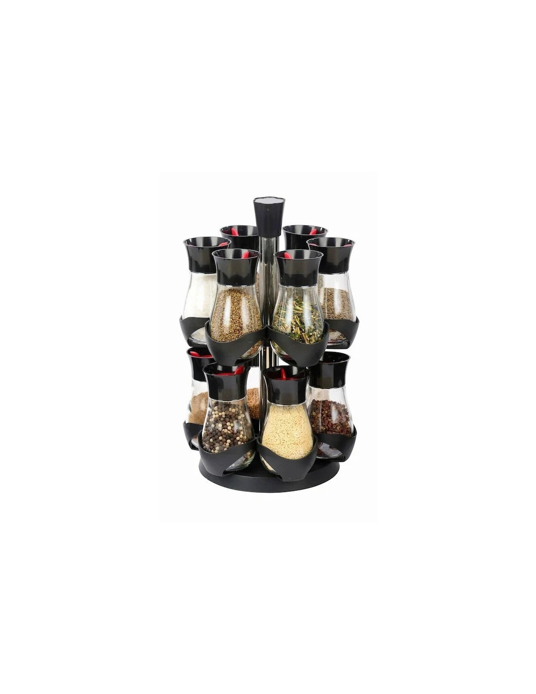 - Set recipiente pentru condimente pe un suport din plastic rotativ cu un design modern;