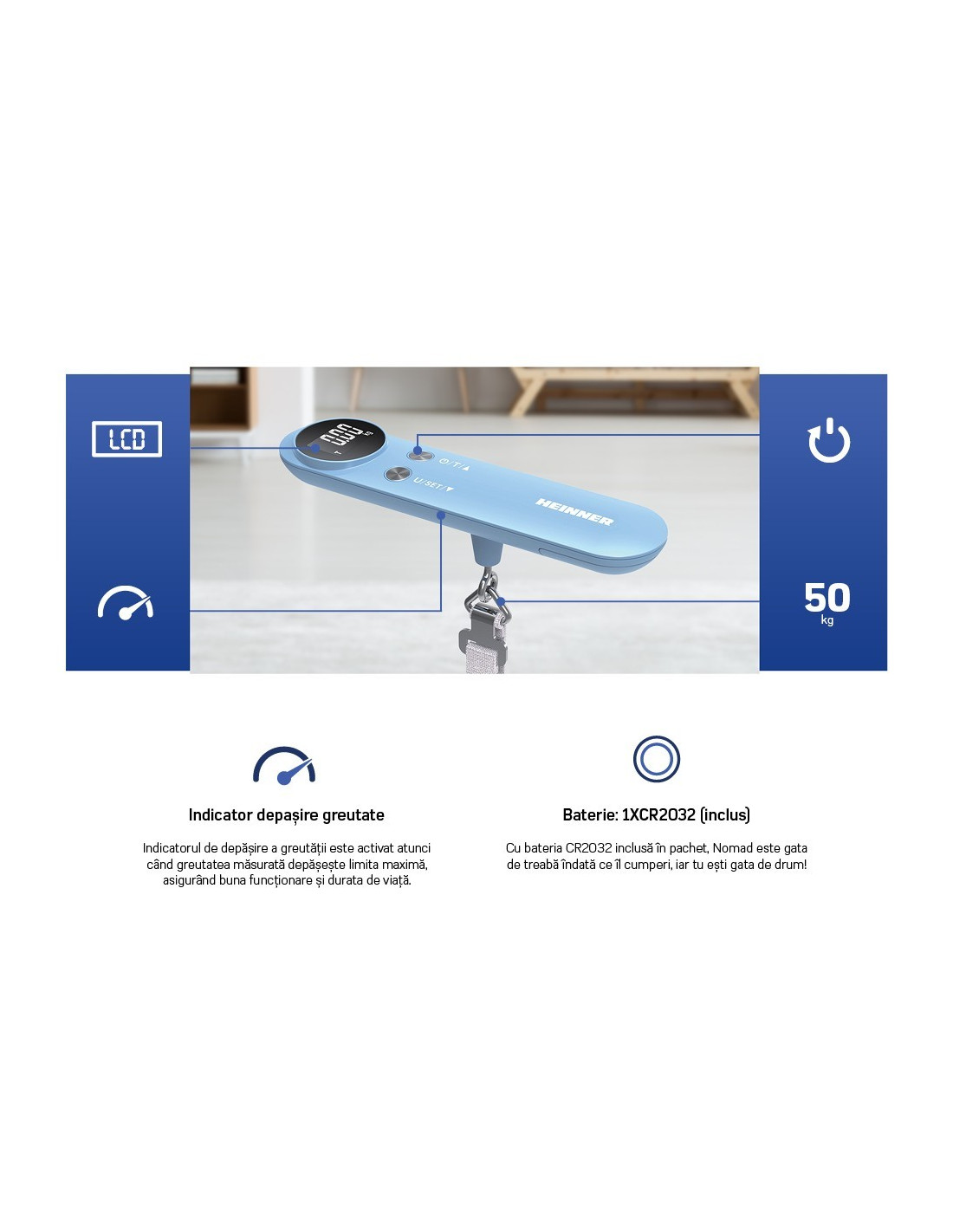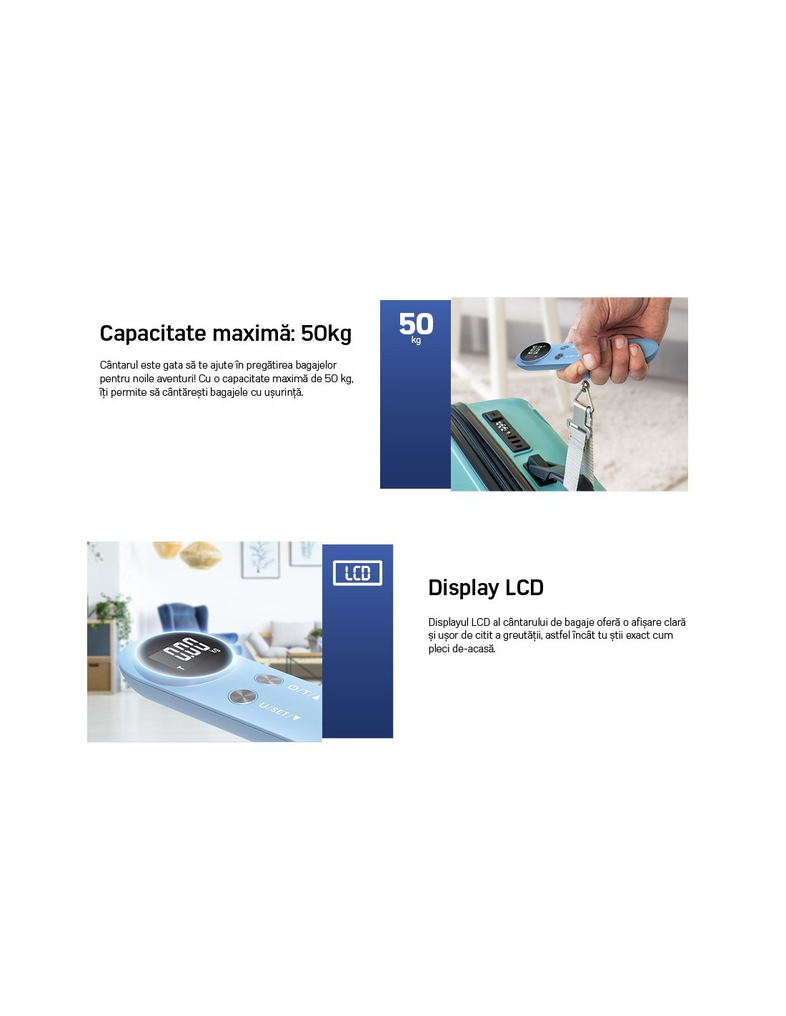 • Cantar pentru bagaje • Sarcină maximă: 50 kg • Afișaj LCD